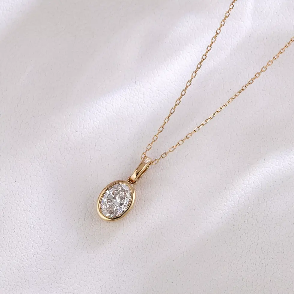 Oval Diamond Bezel Set Pendant (Pendant Only)